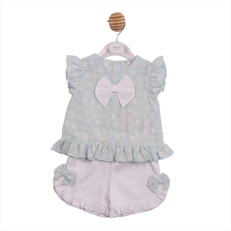 Mintini Baby Girls Blue Blouse & Shorts Set